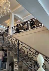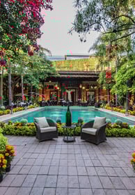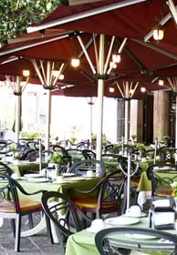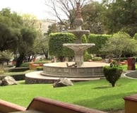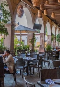 Elegante restaurante situado en una hacienda restaurada del siglo XVIII, con frondosos asientos al aire libre y una fuente.