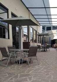 Para disfrutar en San Juan del Río, con jardín, mesas al aire libre y una gran variedad de platillos.